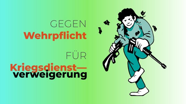 Vorbereitung / Entwicklung eines Straßentheaters bzw. einer Performance, zum Thema Militärdienst und Kriegsdienstverweigerung. Eure Kreativität ist gefragt. Zwei erfahrene Theaterpädagoginnen werden versuchen mit euch zusammen etwas Aufführbares zu zu entwickeln.