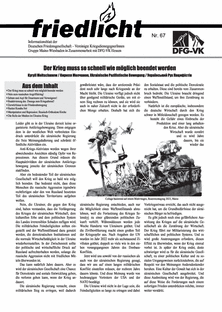 In dieser Situation bietet die Deutsche Friedensgesellschaft - Vereinigte KriegsdienstgegnerInnen (DFG-VK) einen Rahmen, äußerst sinnvolle und notwendige Friedensarbeit zu leisten.